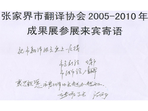 2010年12月8日—2011年2月20日市翻译协会在岳阳地区,长沙市、张家界市区举办了2005-2010年翻译成果巡回展活动,图为来宾寄语6