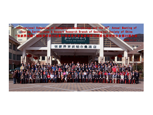 图为市翻译工作者与张家界地貌国际研讨会暨中国地质学会旅游地学与地质公园研究分会第25届年会参会代表合影